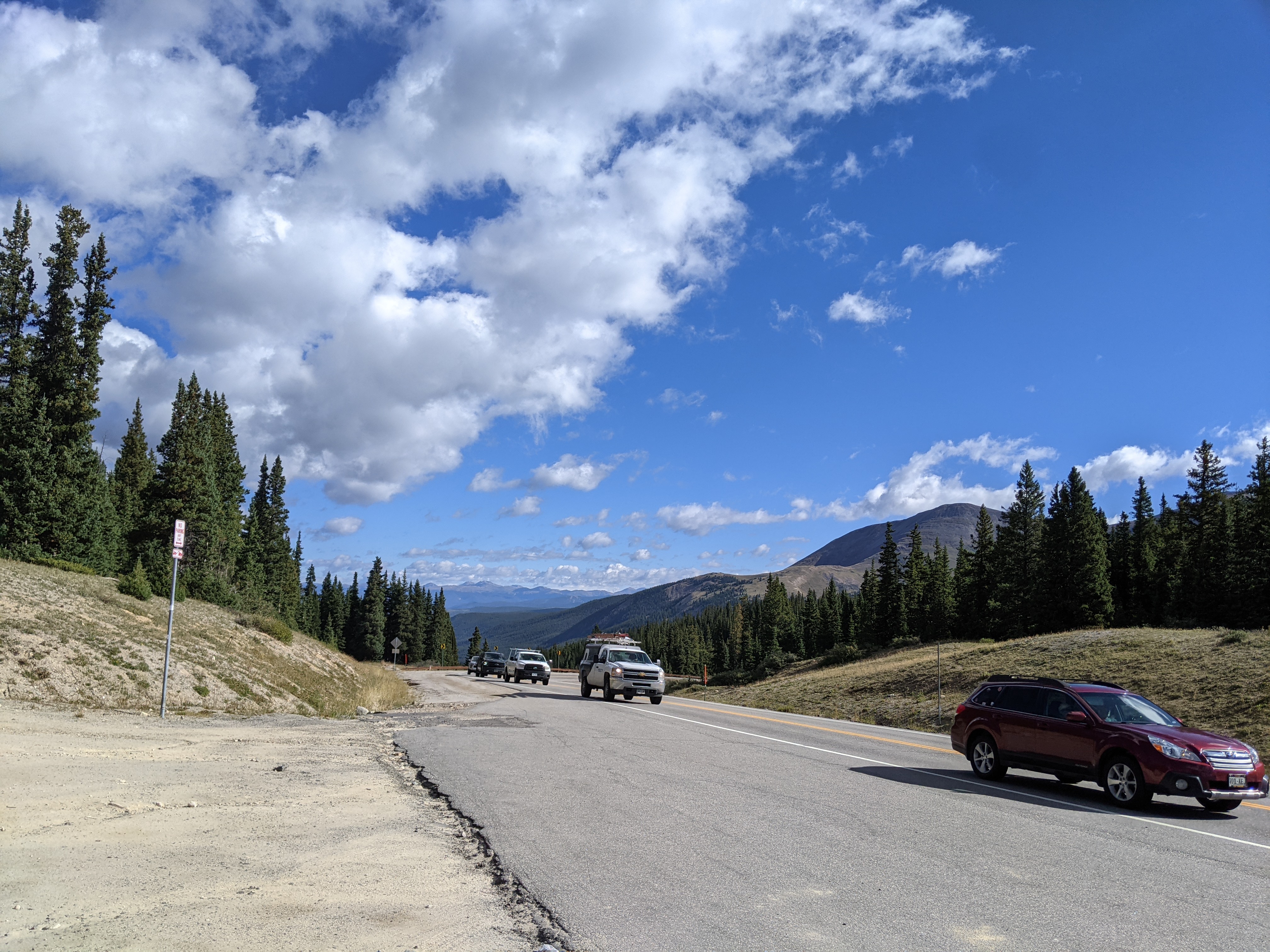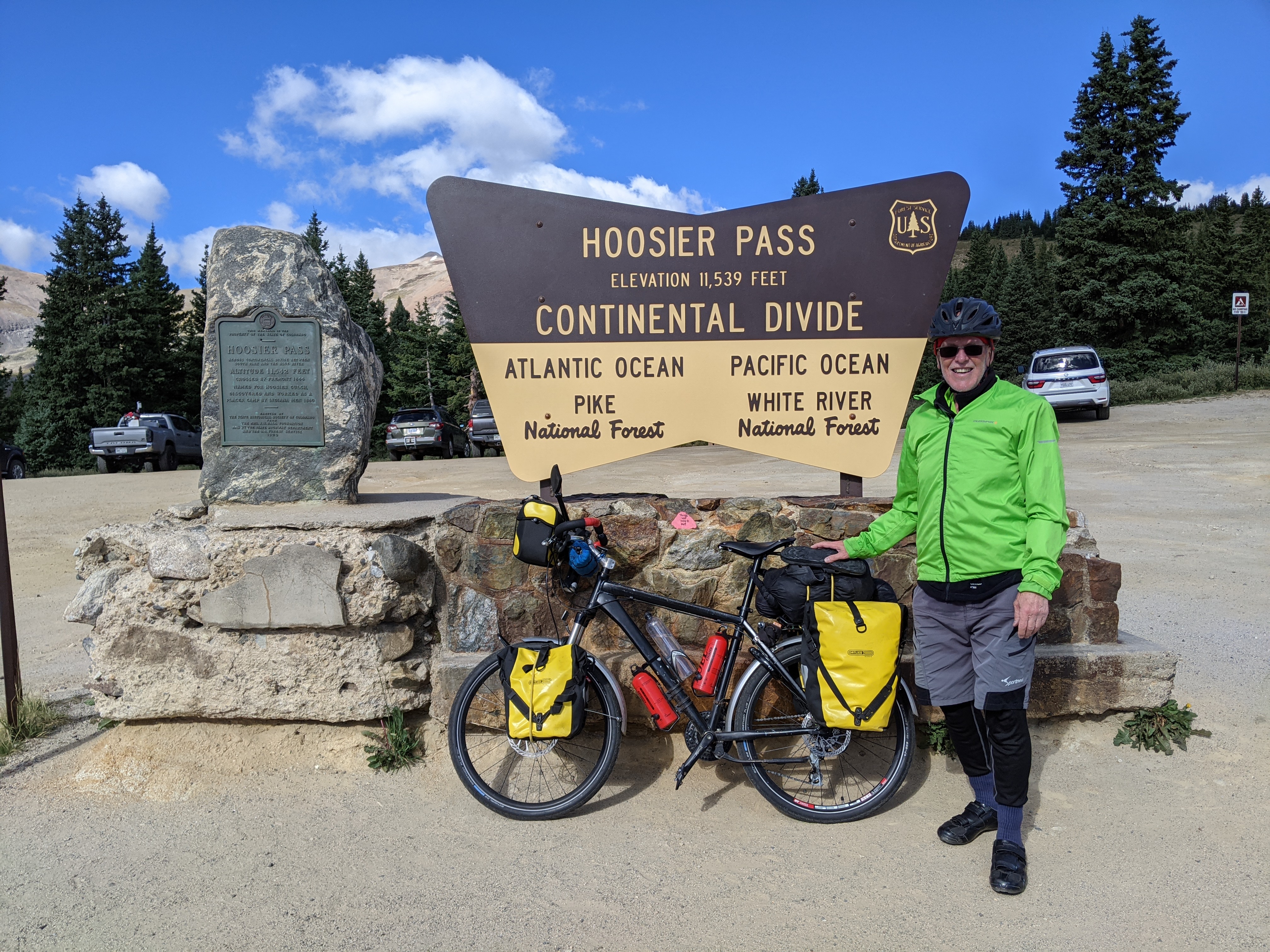 On Tuesday it was over the Hoosier Pass, the highest point of the TA Trail. The ascent was only 2,000 ft and it took me just 2 hours. Only two times I was almost running out of gears, both times on the inside of serpentines. Tommy, you know from the Logie Kirk Climb, what difference the inside and outside make. The 30 days of training seems to be paying off. I got to the top without much of a problem. In planning, the 11,000 ft were a bit of a worry, but in the end it all went smoothly.