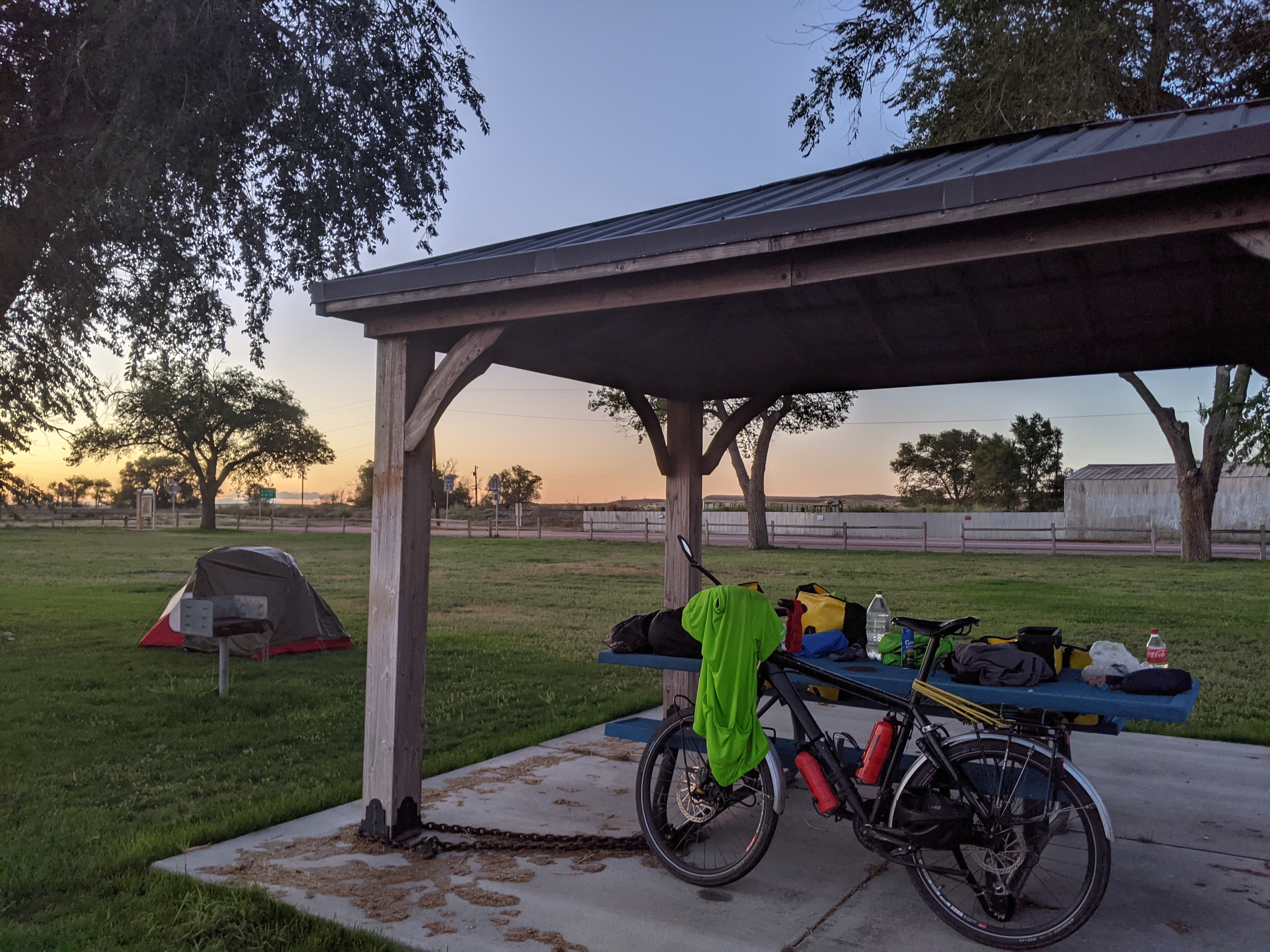 On Thursday, camping in Eads, I met the first non-white person on the Trail: a woman from Derry in Northern Ireland of all places, of Indian origin. She was part-way through traveling around the world with her partner, a Londoner. After crossing the US, they were going through Marocco, then to Spain, France and back to the UK. I asked them, if they had any negative experiences, traveling through some of the poorest countries in the world. Not a single incident. Their take was, that they were viewed as even less fortunate, not being able to afford a bus, a car or a plane ticket for traveling. Also, although they had a lot of expensive equipment, non had any real value in those parts of the world. Who wants a small, lightweight tent, a touring bike or a GPS navigator?