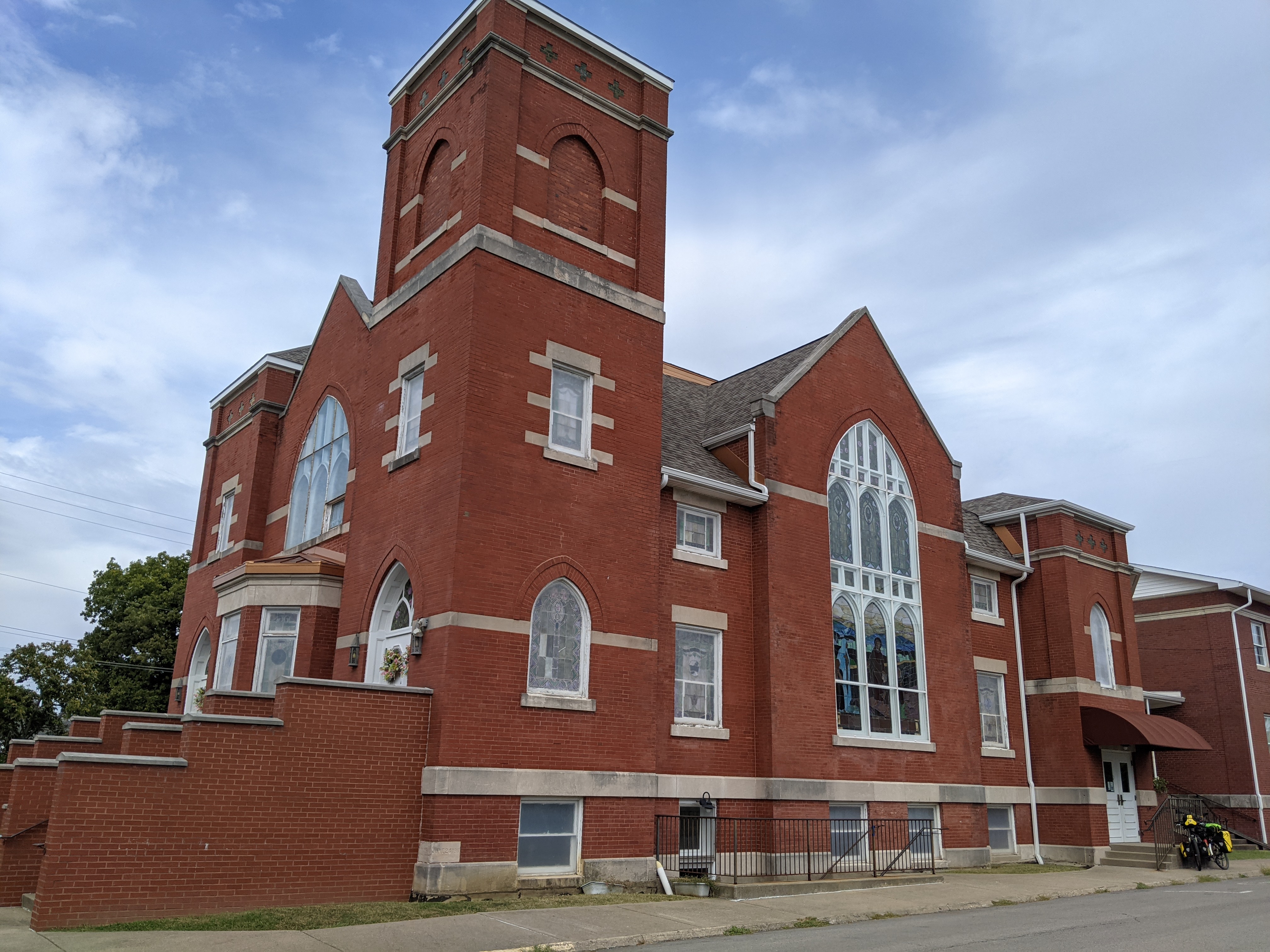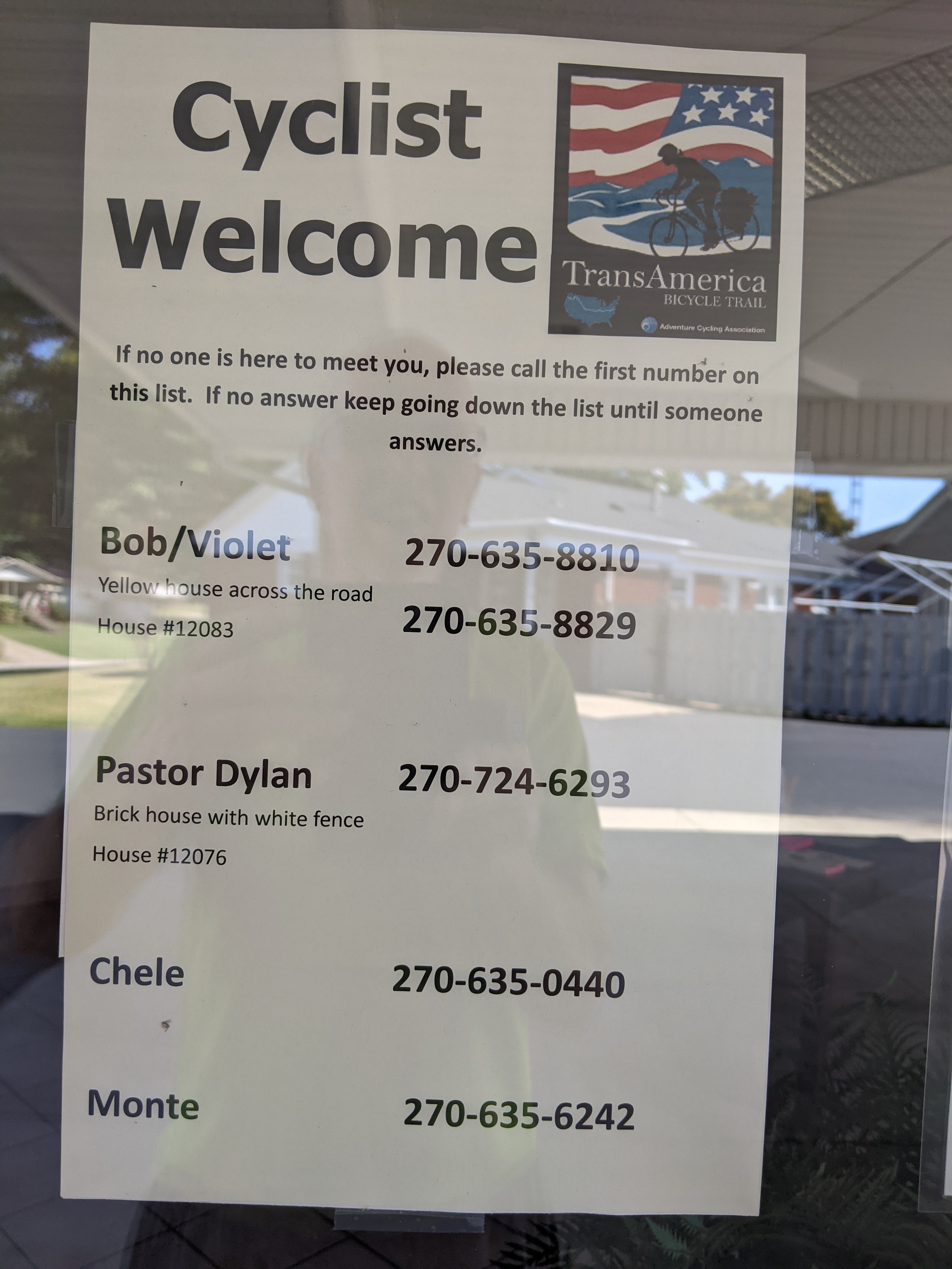 That night I stayed in the Marion United Methodist Church. The pastor's phone number was on the church door, and being a Sunday afternoon, I wonder if I would get him. Sure enough, 10 minutes later he came around and let me in. Apparently, the church had been offering cyclists accommodation since the TA was established in 1976. So, for 47 years, any cyclists, appearing at their doors, was offered free shelter, a bed, and most importantly, a shower: Christian values in action. They had stacks and stacks of visitors books to prove it. James, the pastor even took a picture of me and will stick it next to my entry. Looking back the most recent book, I saw a number of people I had met going either W-E or E-W. There must have been hundreds and hundreds of them over time. What an amazing service!