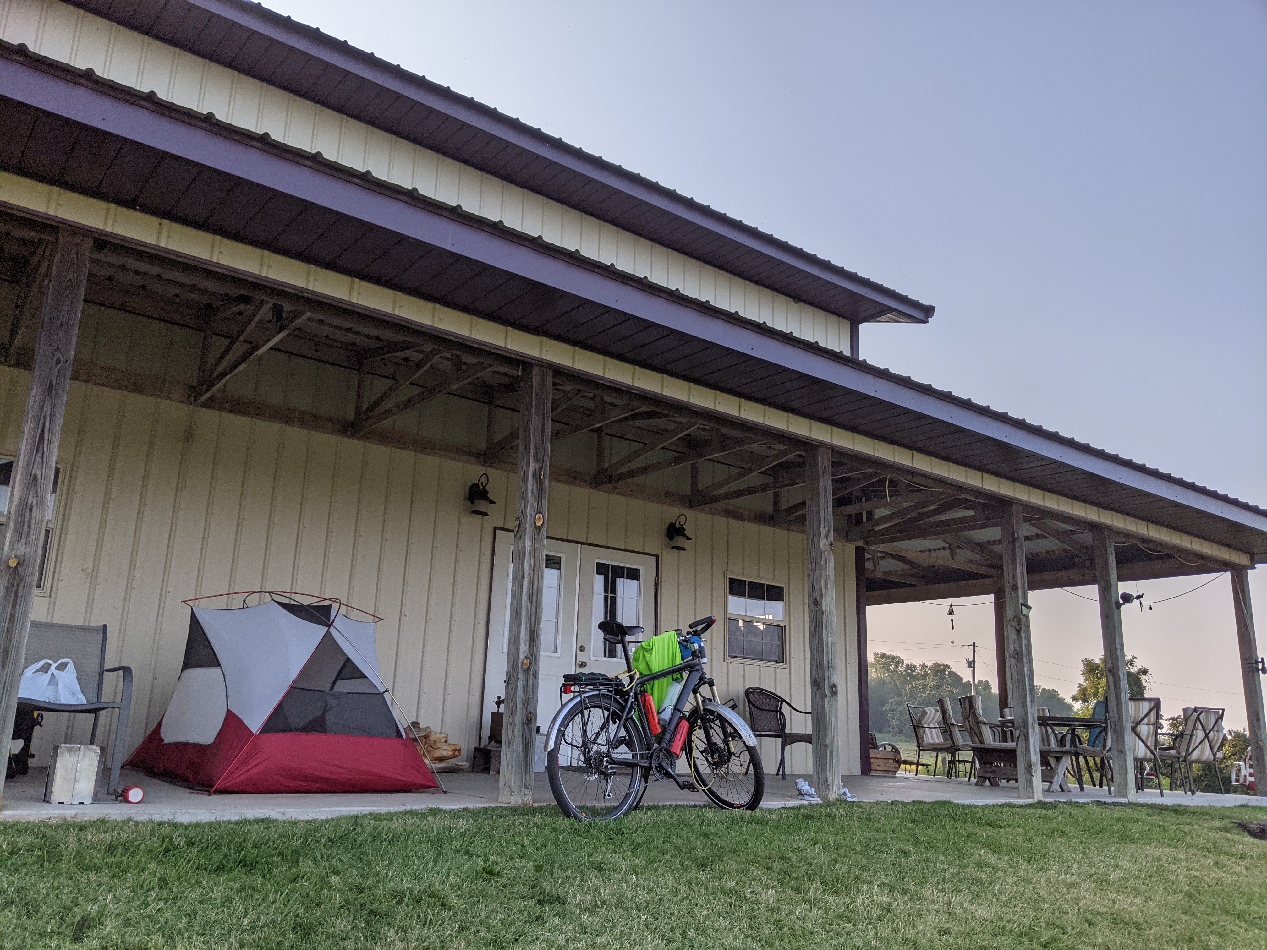 The people at the Winery were very welcoming and accommodating (don't worry, I didn't fall off the wagon). They even had an open air shower, but since it was way out in the country, there was no problem with modesty. They also let me camp on the porch, which means no outer tent needed, therefore no condensation on the inside of the tent in the morning.
